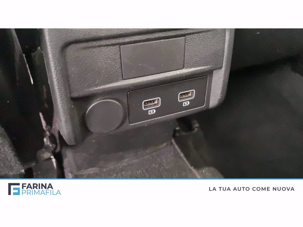 - Bracciolo anteriore scorrevole con compartimento e 2 portabicchieri, prese 2 usb+1 aux nella prima fila, prese 2 usb e bocchette d'aria nella seconda fila