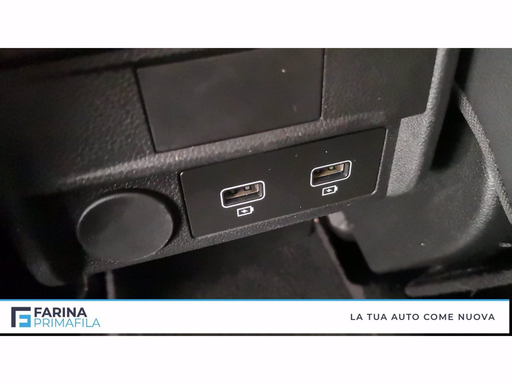 - Bracciolo anteriore scorrevole con compartimento e 2 portabicchieri, prese 2 usb+1 aux nella prima fila, prese 2 usb e bocchette d'aria nella seconda fila